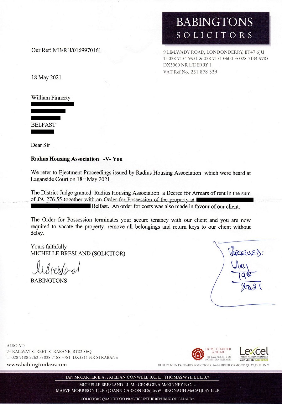 "BABINGTON SOLICITORS", "WILLIAM FINNERTY": |