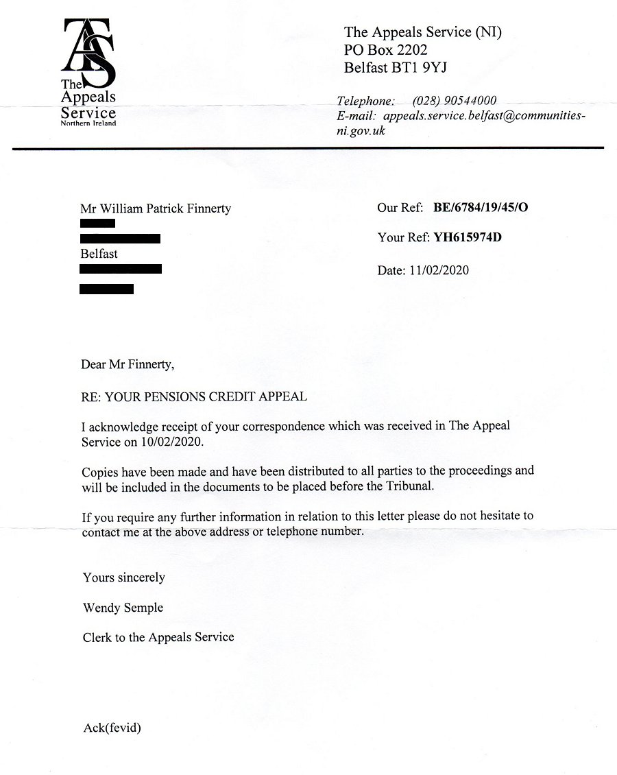 RE: THE FEBRUARY 14TH 2020 ORAL HEARING OF MY PENSIONS CREDIT