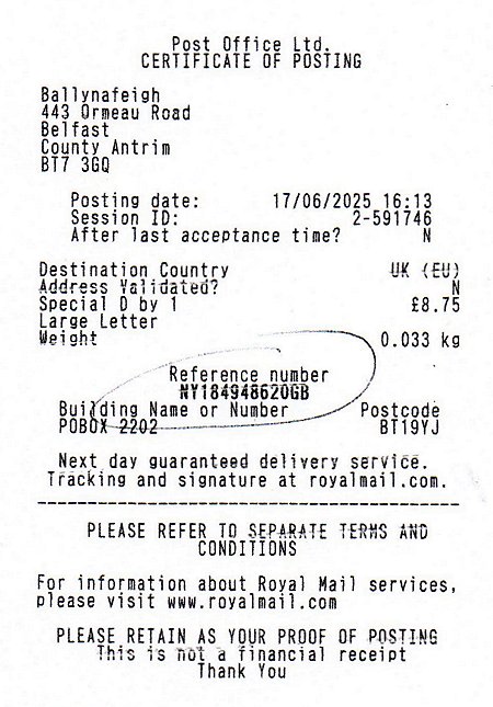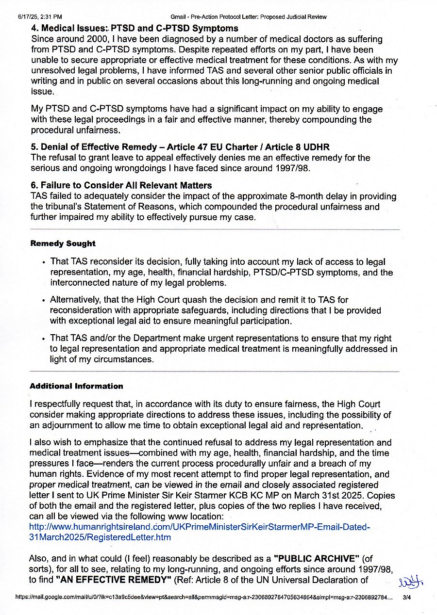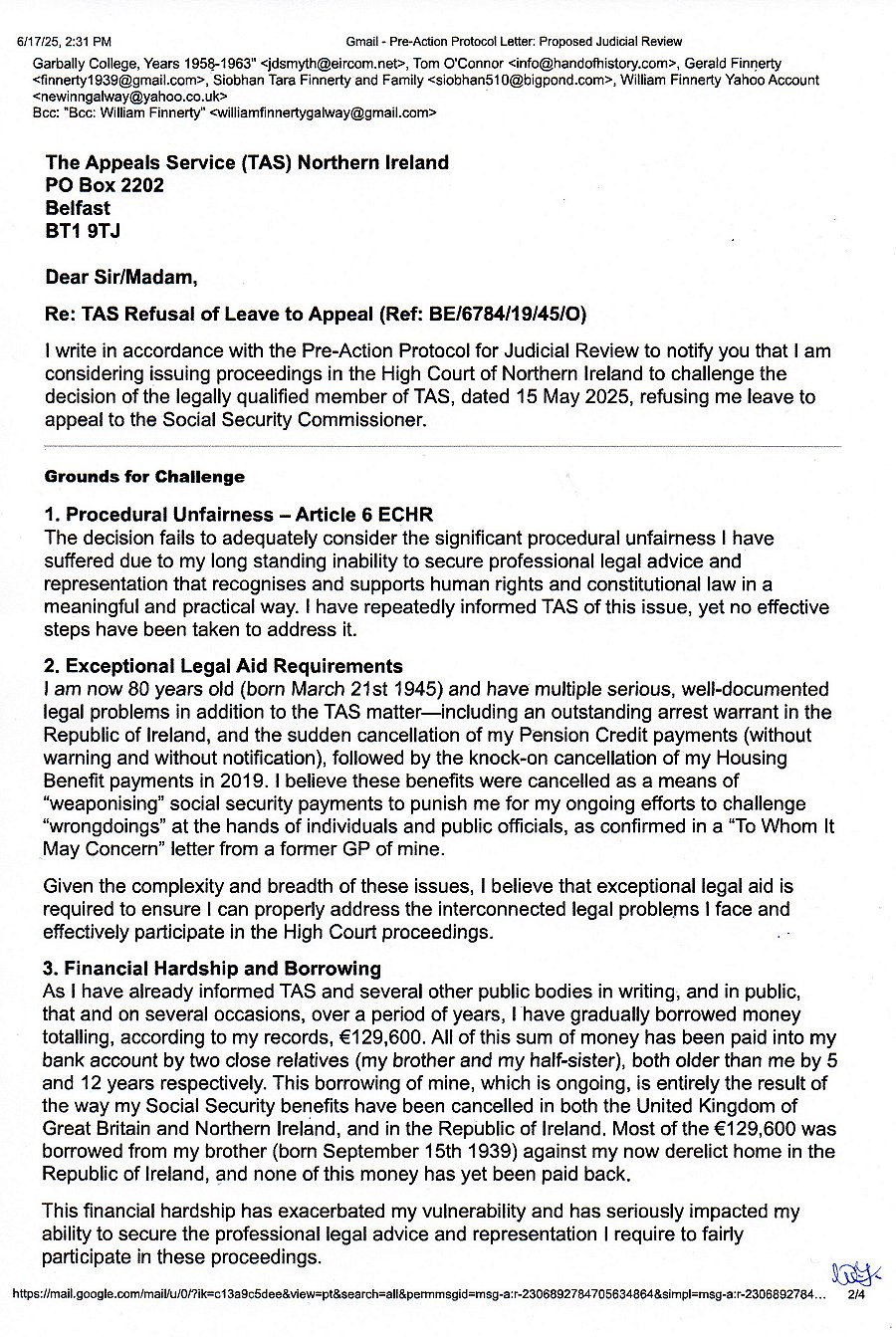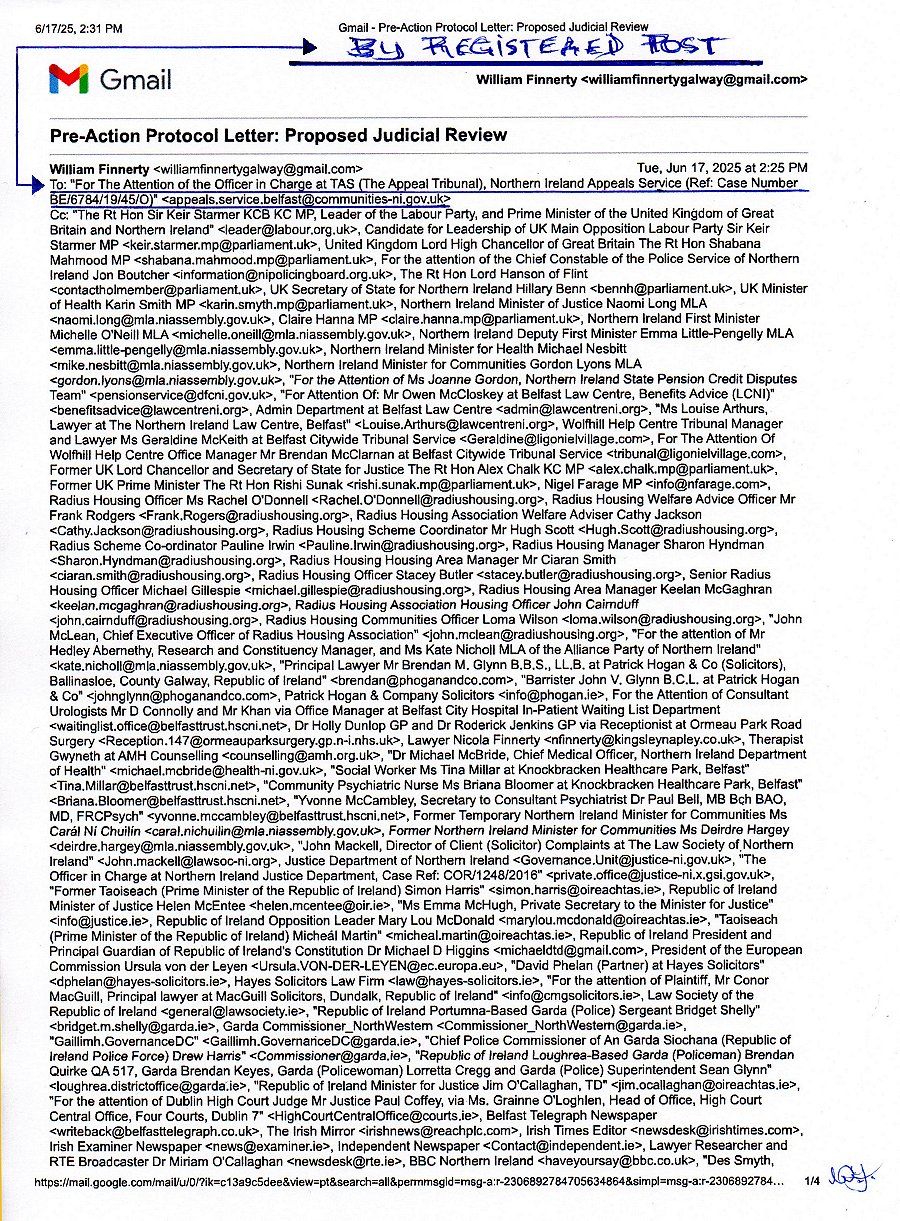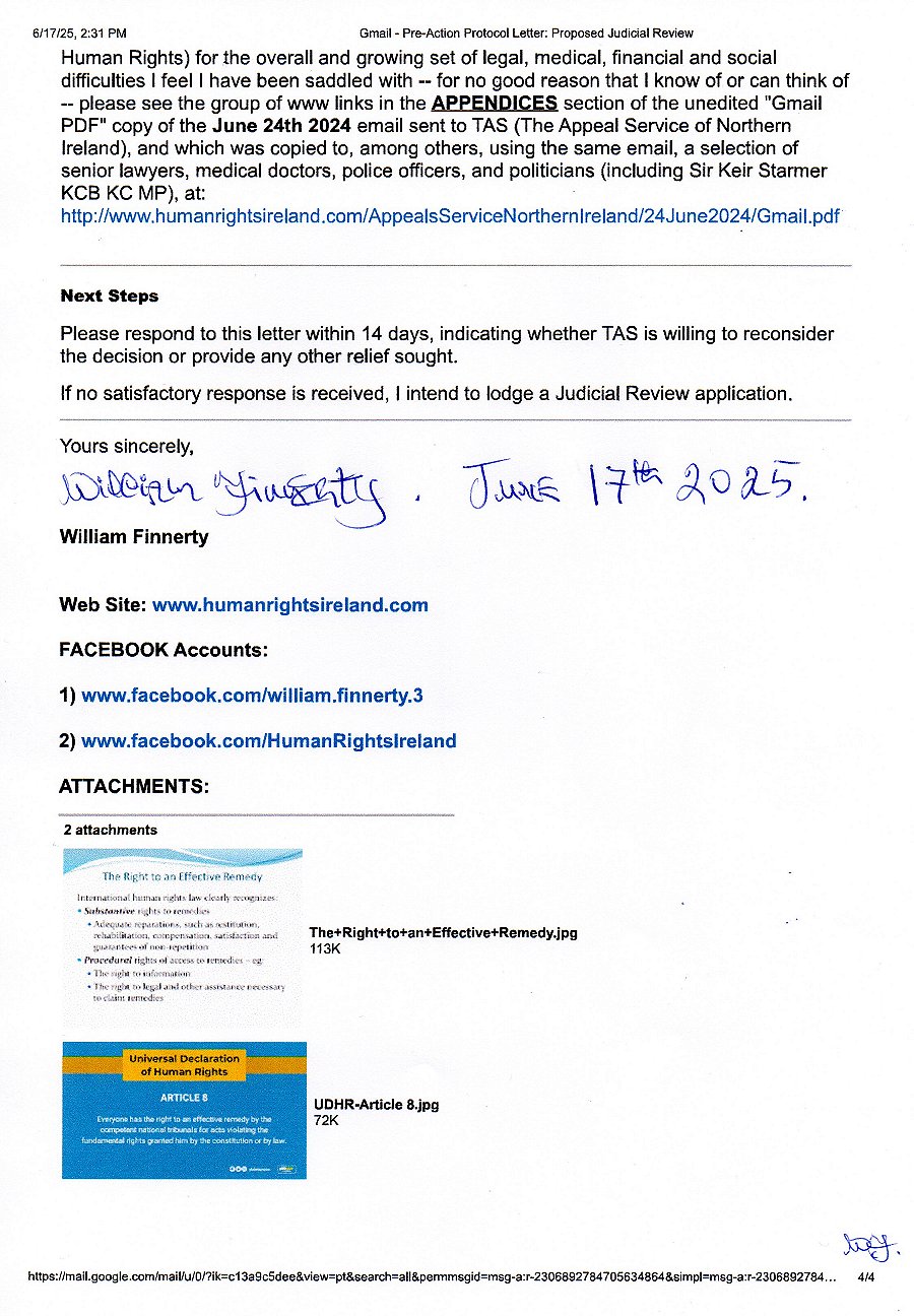 | Email and Registered Letter dated June 17th 2025 to The Appeals Service (TAS) Northern Ireland | ||