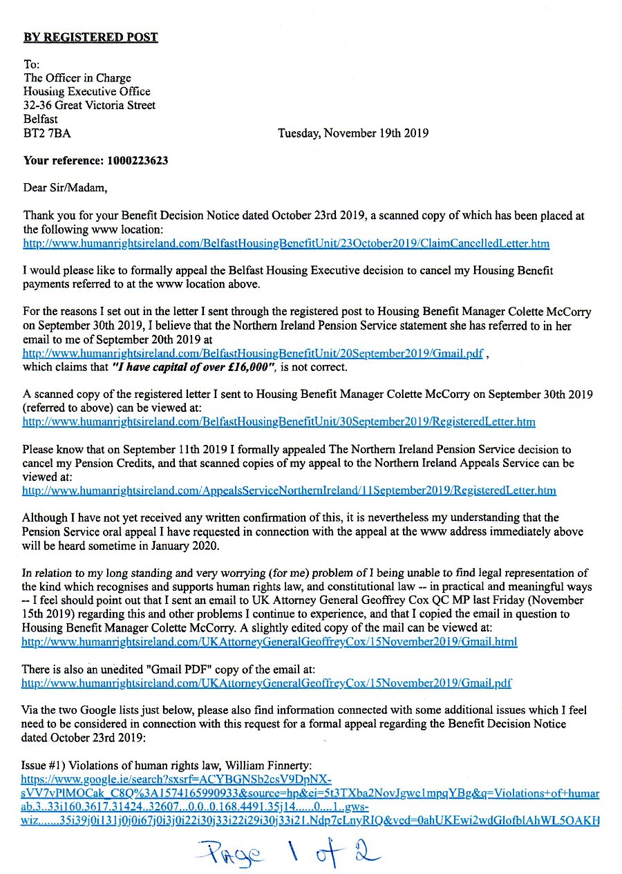 http://www.humanrightsireland.com/BelfastHousingBenefitUnit/19November2019/RegisteredLetter