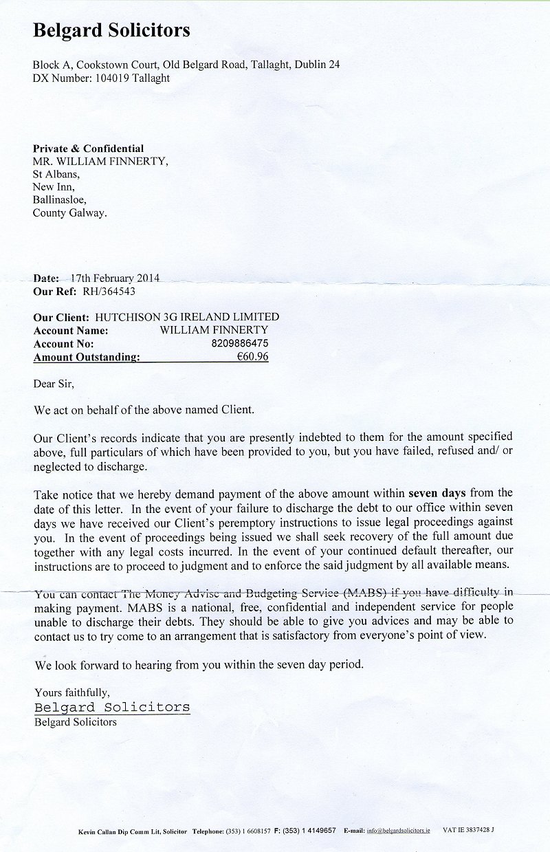 Scanned Copy of letter dated February 17th 2014 from Belgard Solicitors