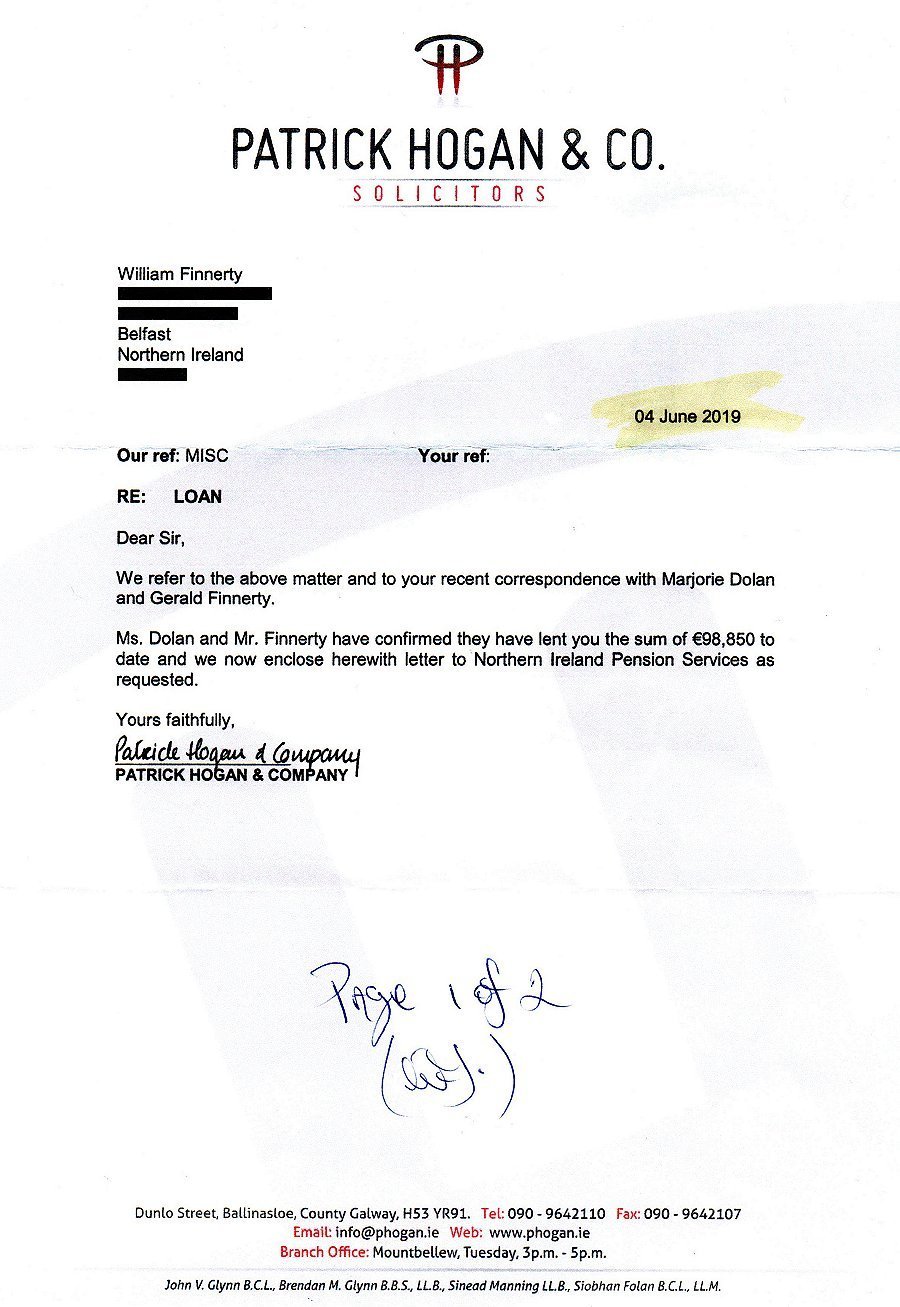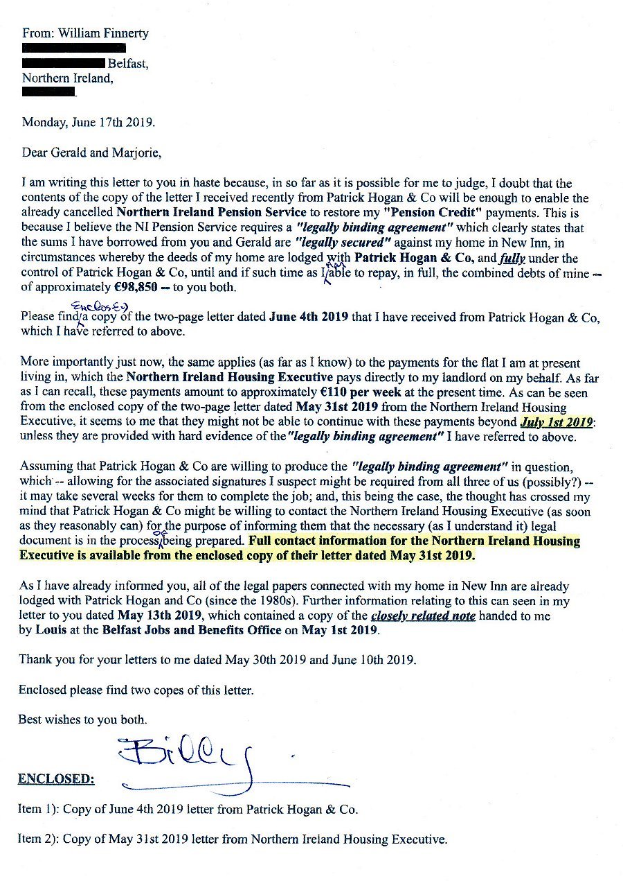 Item 1): Copy of June 4th 2019 letter from Patrick Hogan &