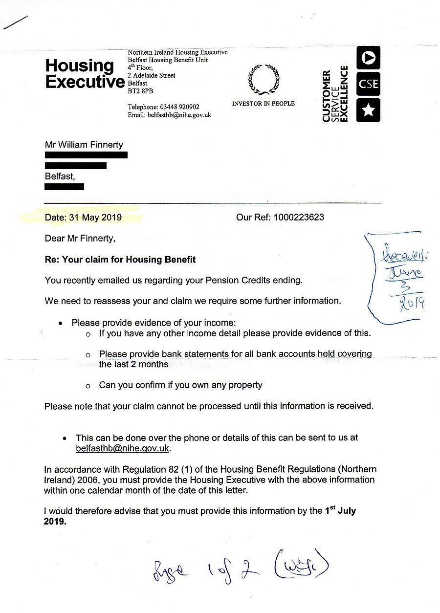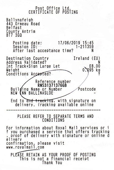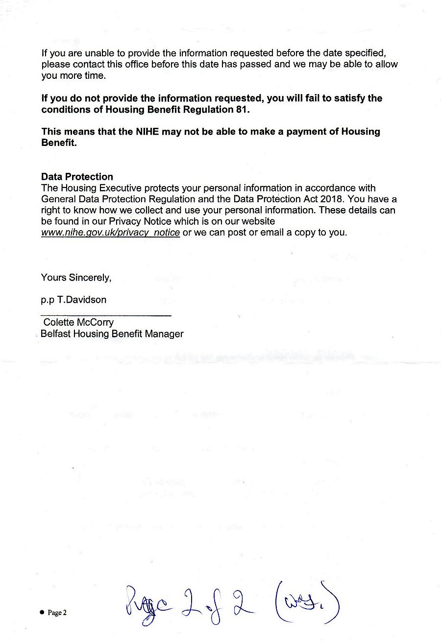 Item 2): Copy of May 31st 2019 letter from Northern Ireland