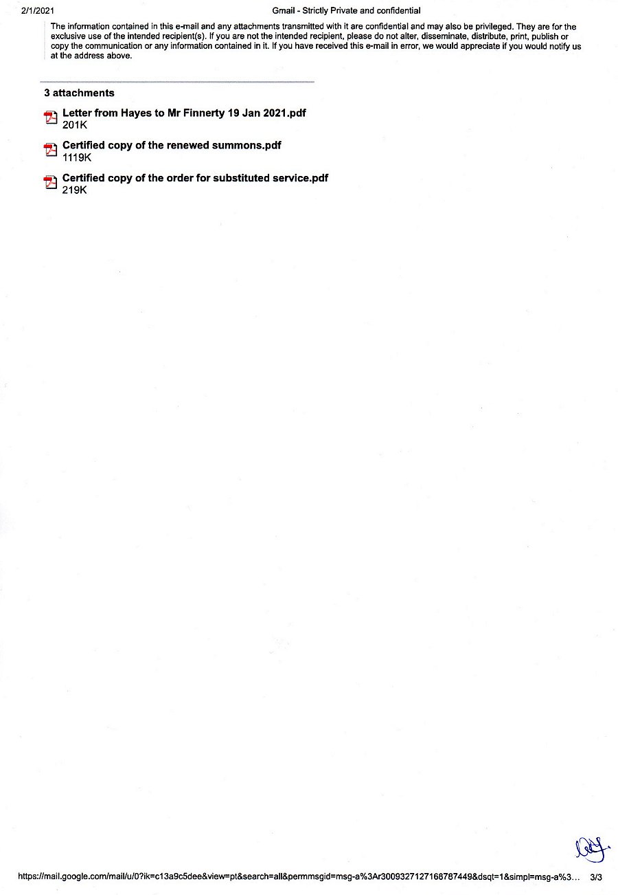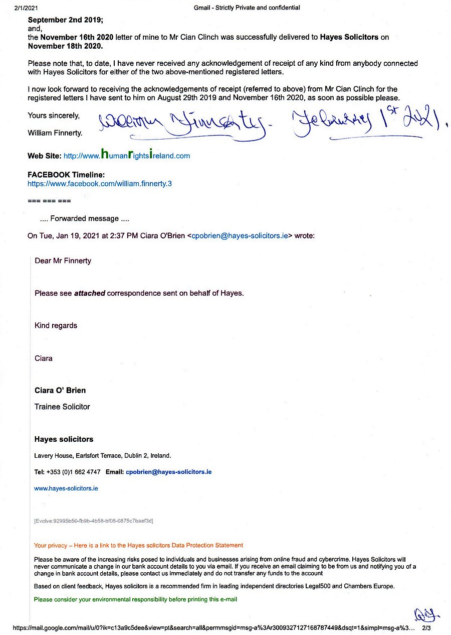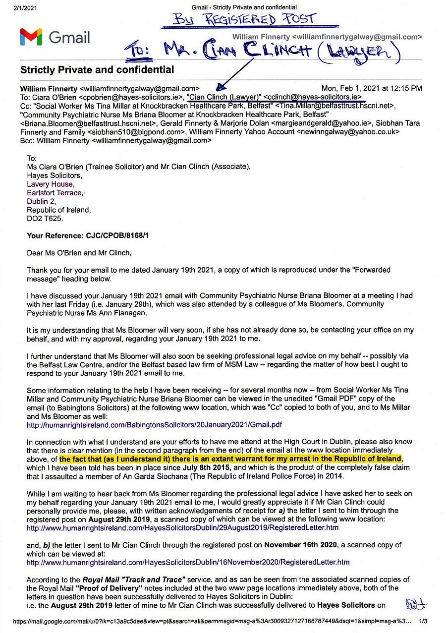 FEBRUARY 1ST 2021 REGISTERED LETTER TO