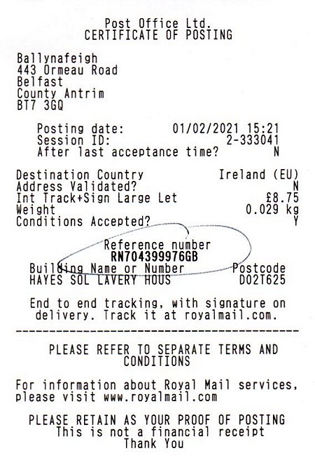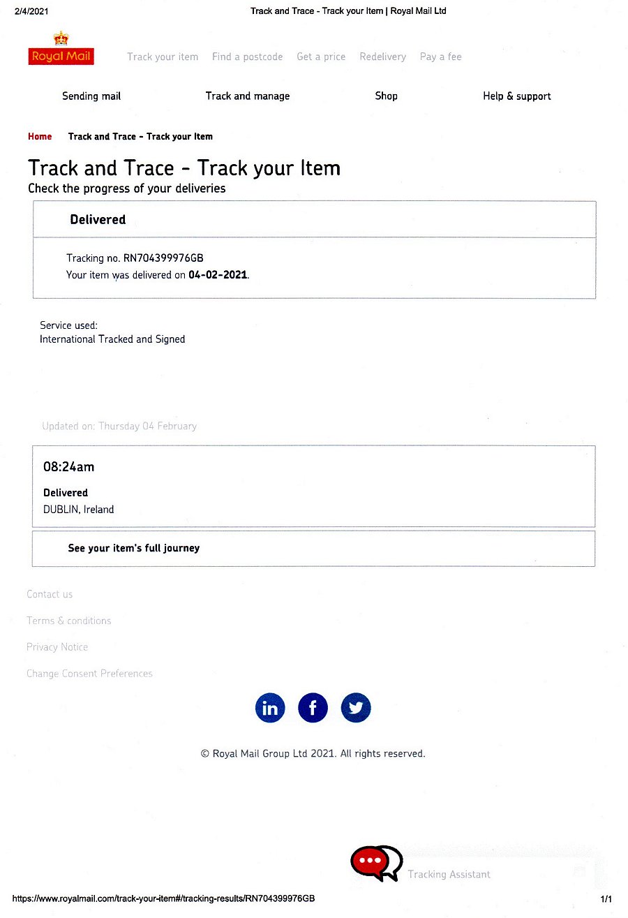 Royal Mail Proof of Delivery on February 4th 2021: