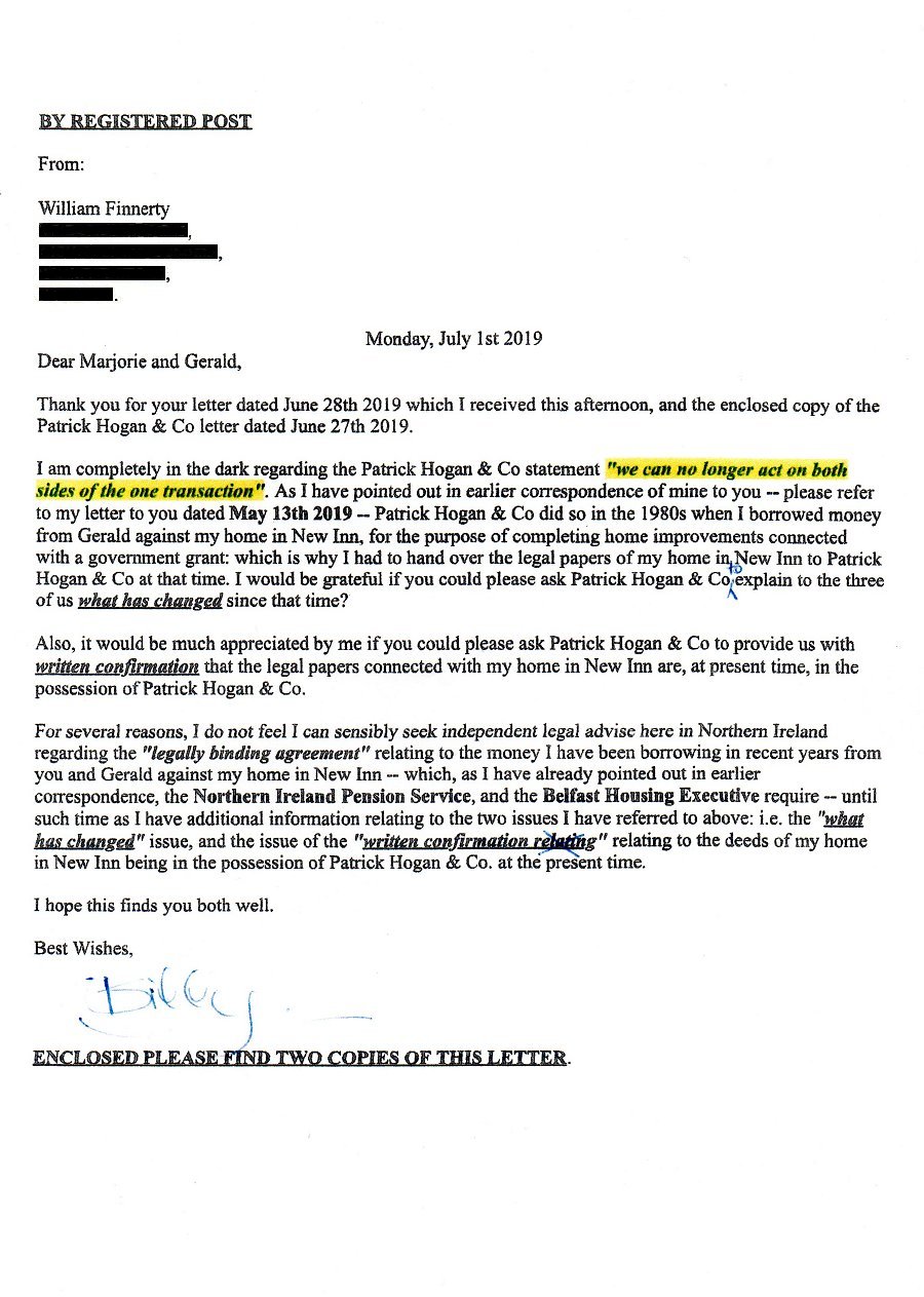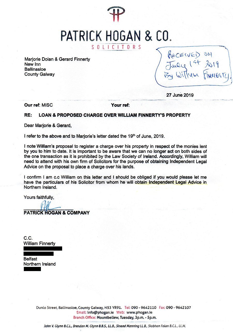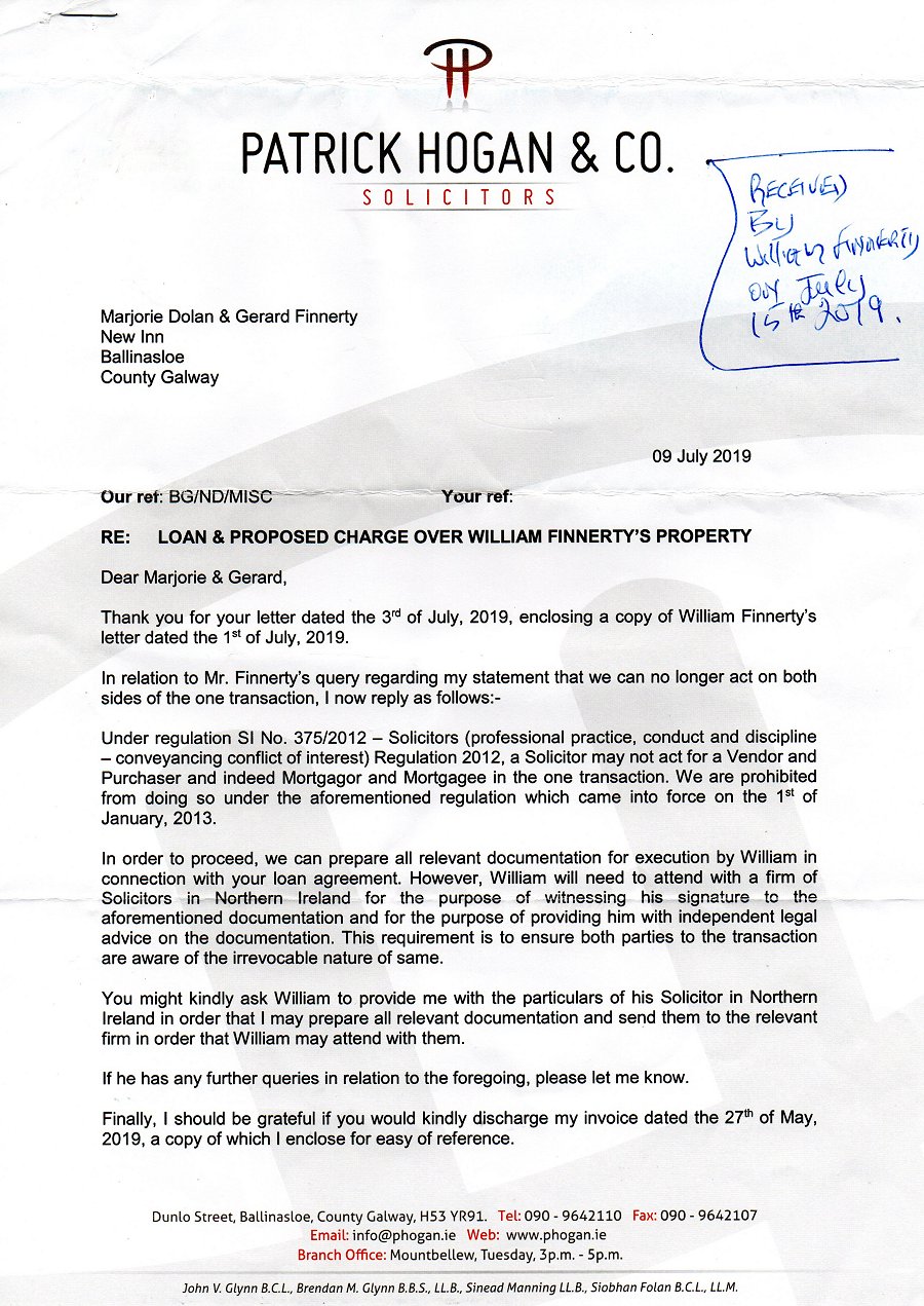 Lawyer Brendan Glynn B.B.S., LL.B to Marjorie Dolan |