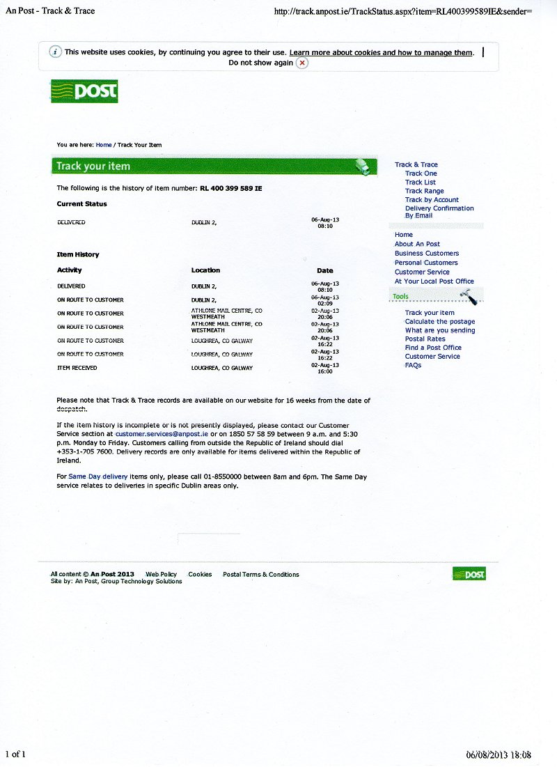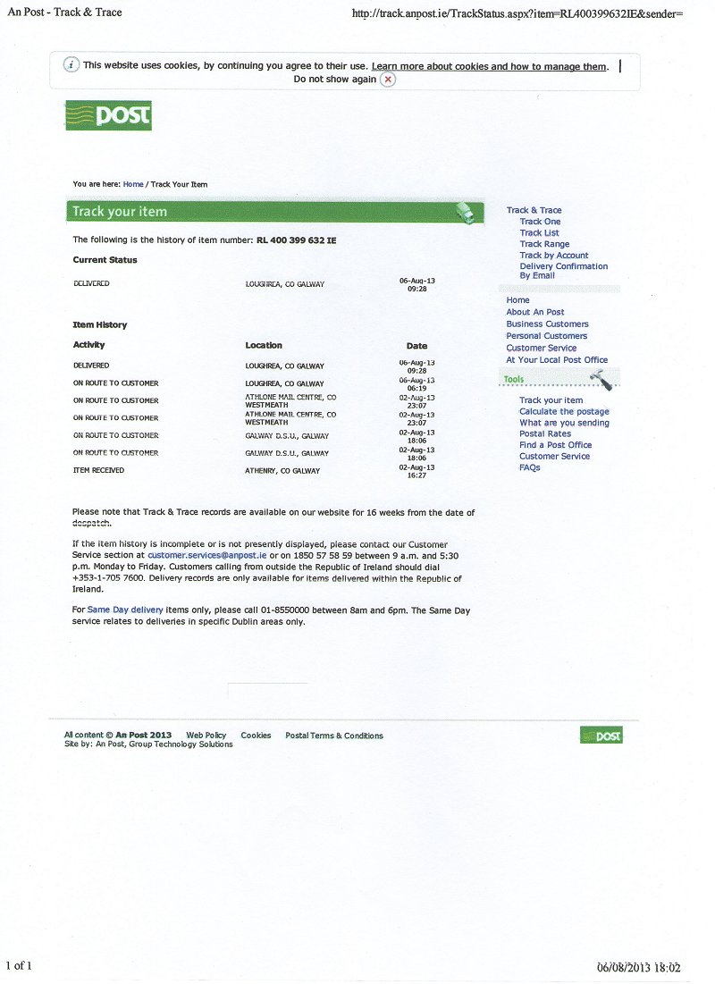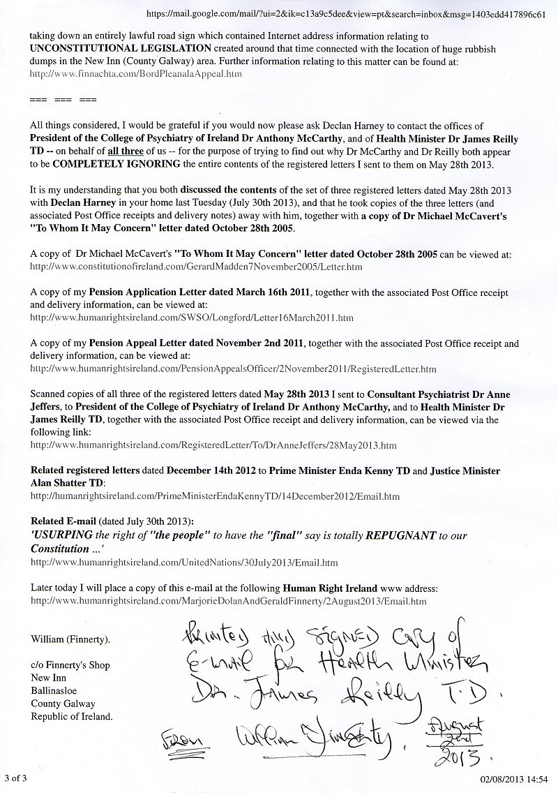 William Finnerty <newinngalway@yahoo.co.uk> | Fri, Aug 2, 2013 at 12:50 PM | |