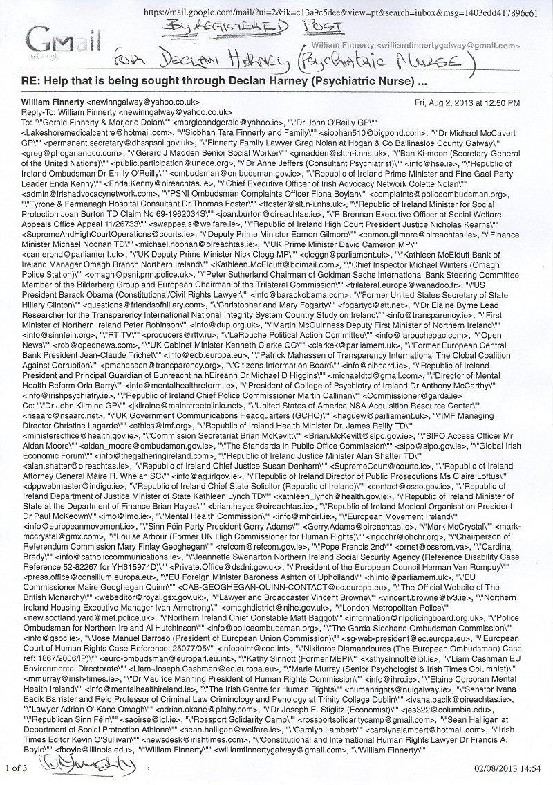 RE: Help that is being sought through Declan Harney (Psychiatric Nurse) ... |