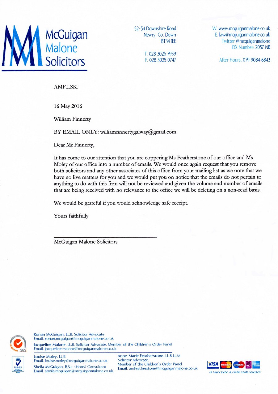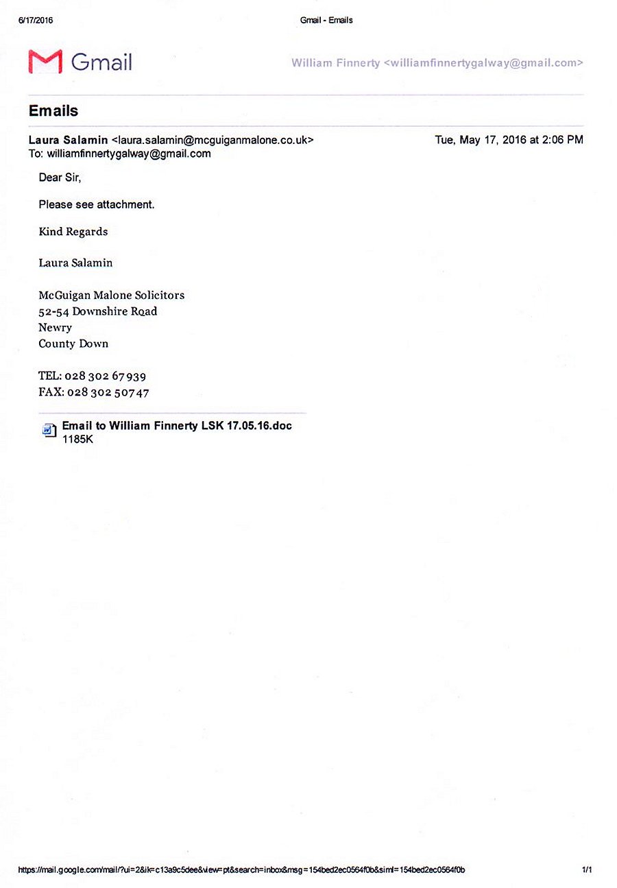 From "McGuigan Malone Solicitors" Law Firm to William Finnerty |