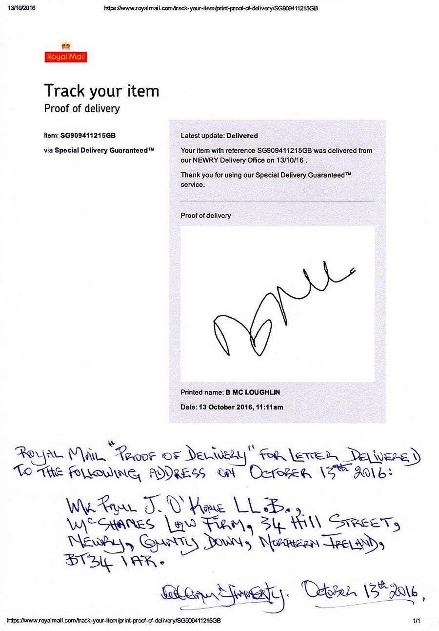 Royal Mail "Proof of Delivery" on October 13th 2016: |