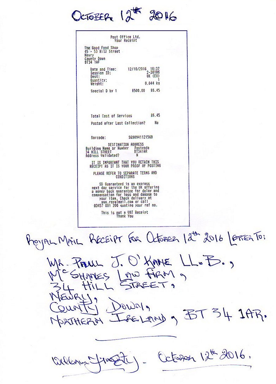 Royal Mail Post Office Receipt dated October 12th 2016: |