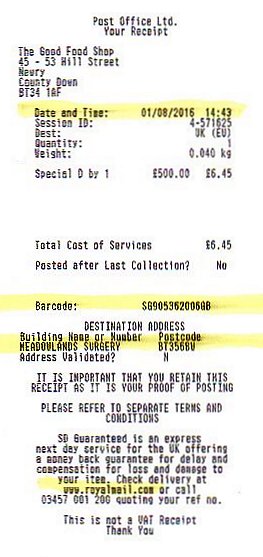 ROYAL MAIL RECEIPT |