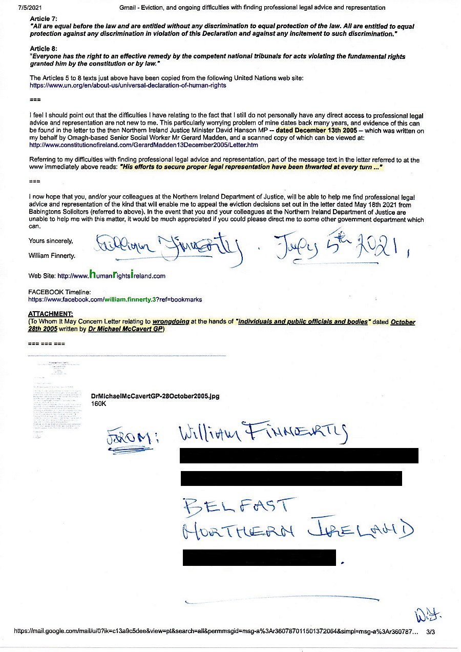 "BELFAST LAW CENTRE", "WILLIAM FINNERTY":