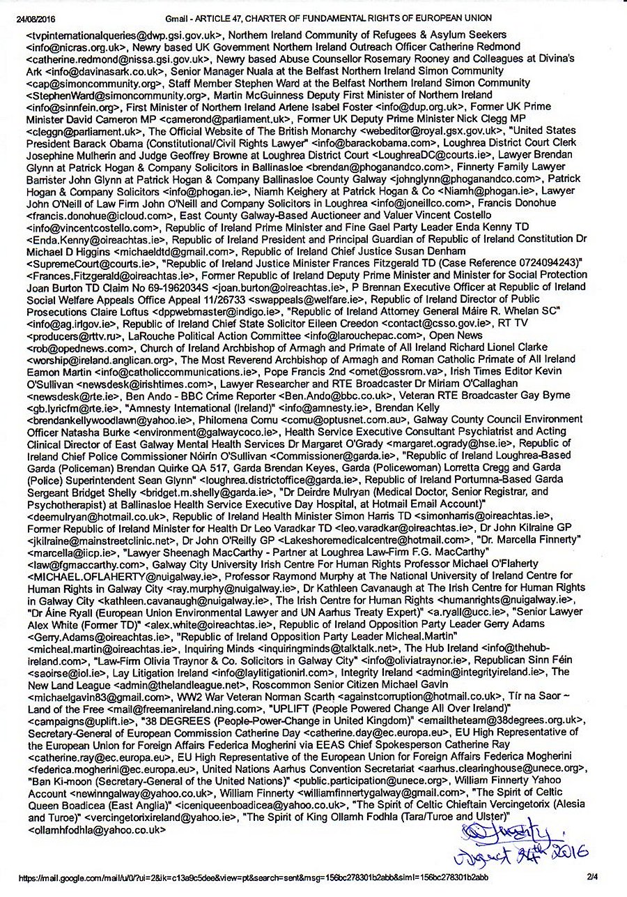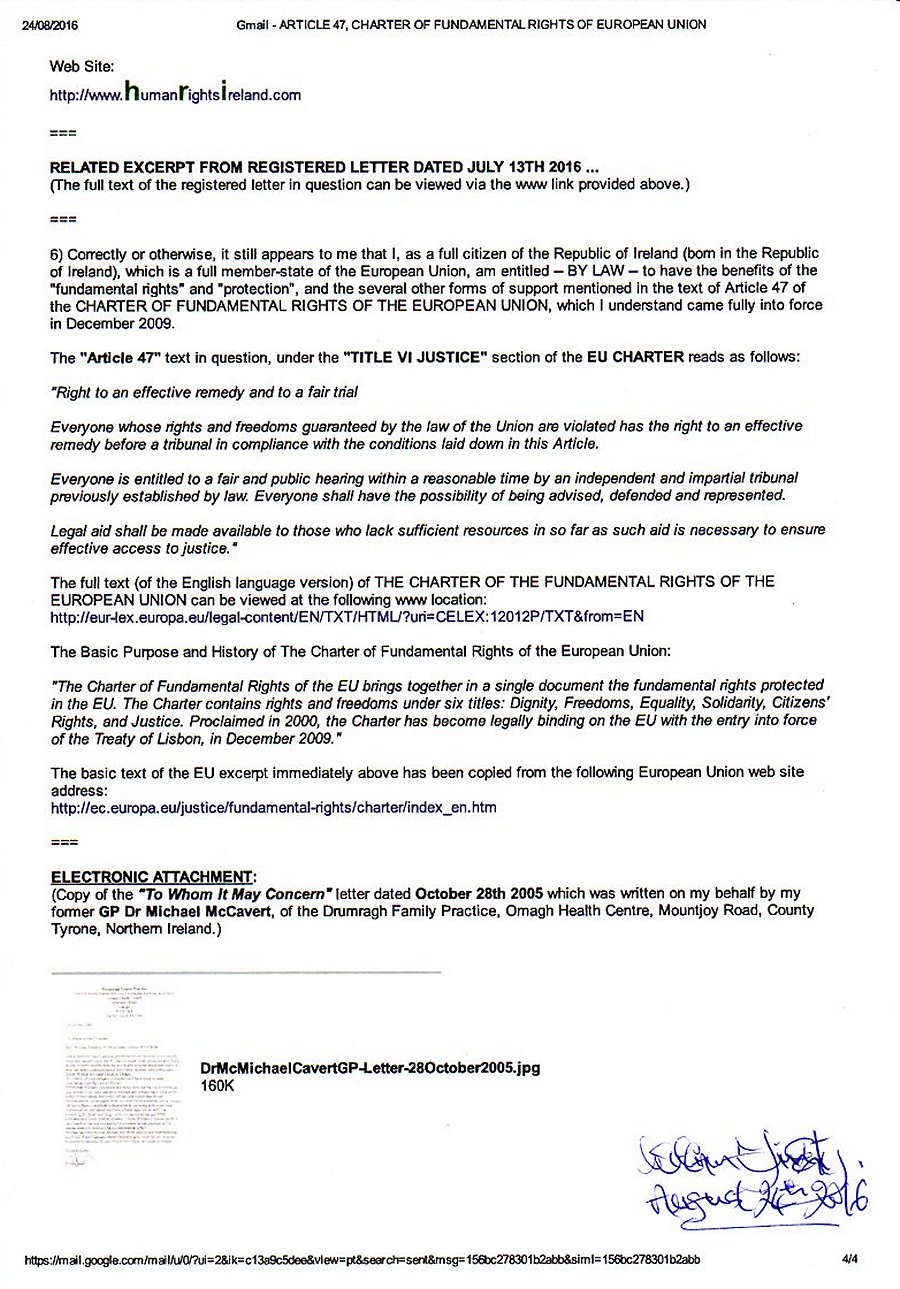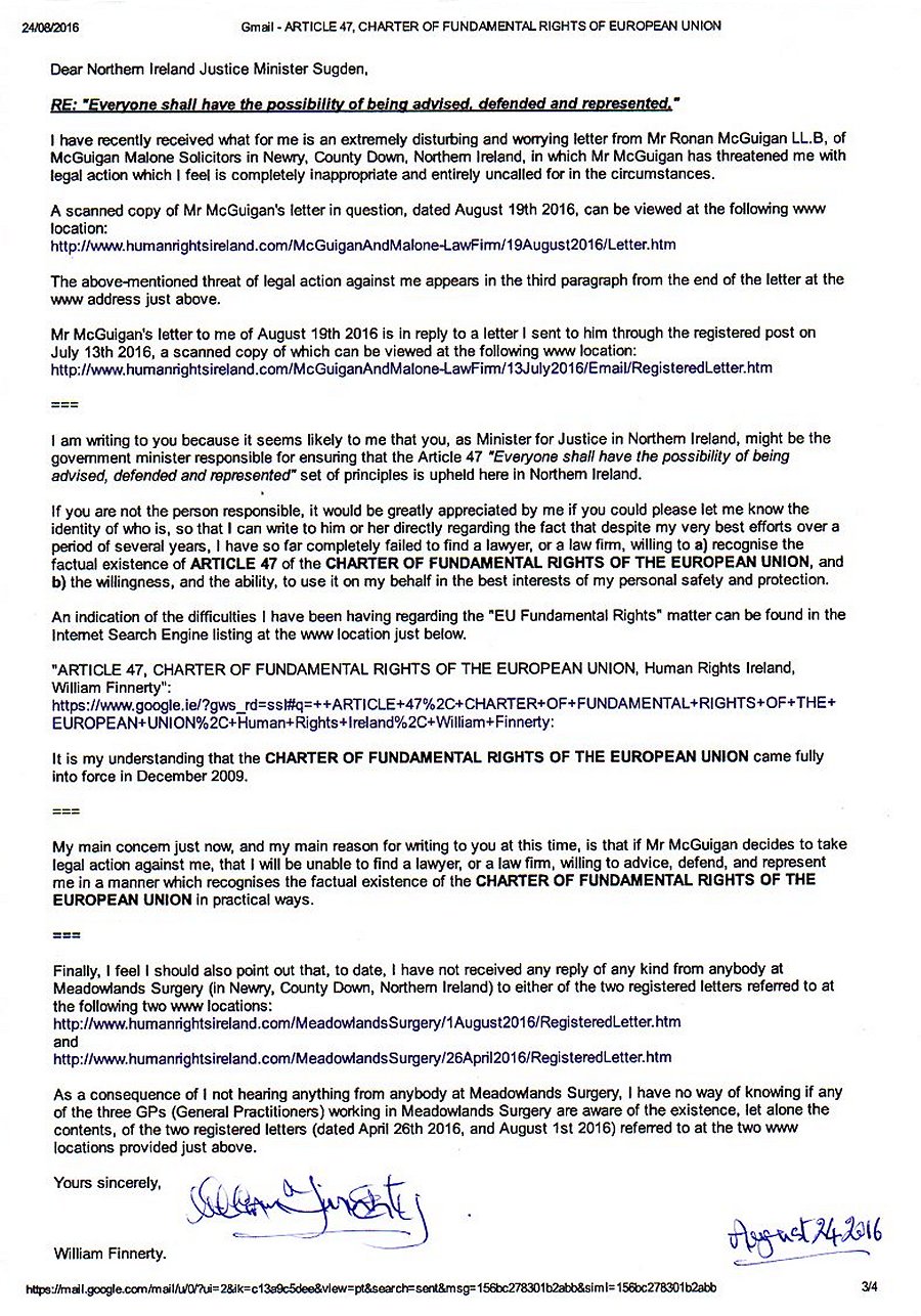 Registered Letter To Northern Ireland Justice Minister Claire Sugden MLA |