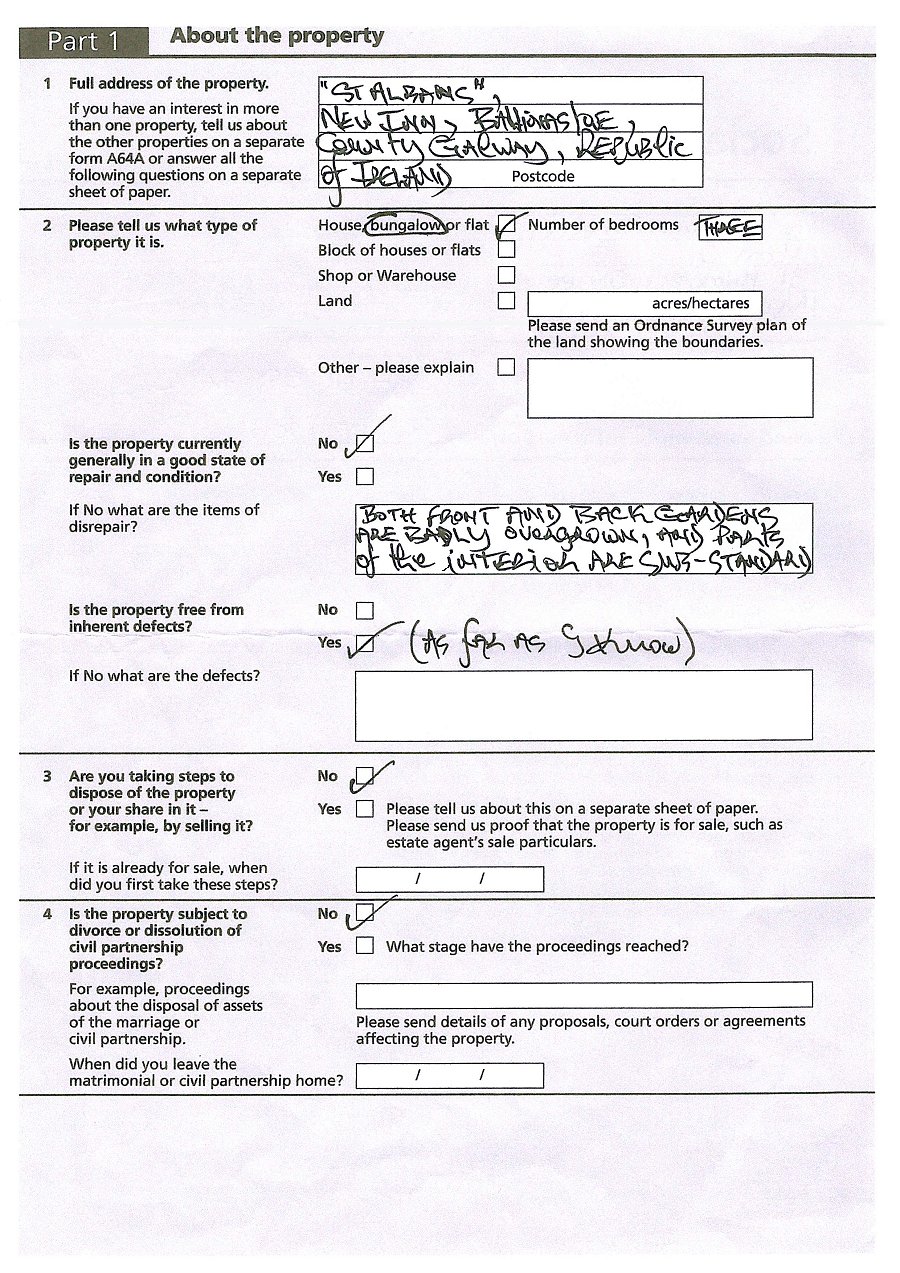 With reference to the sections of the A64A Form referred to below by