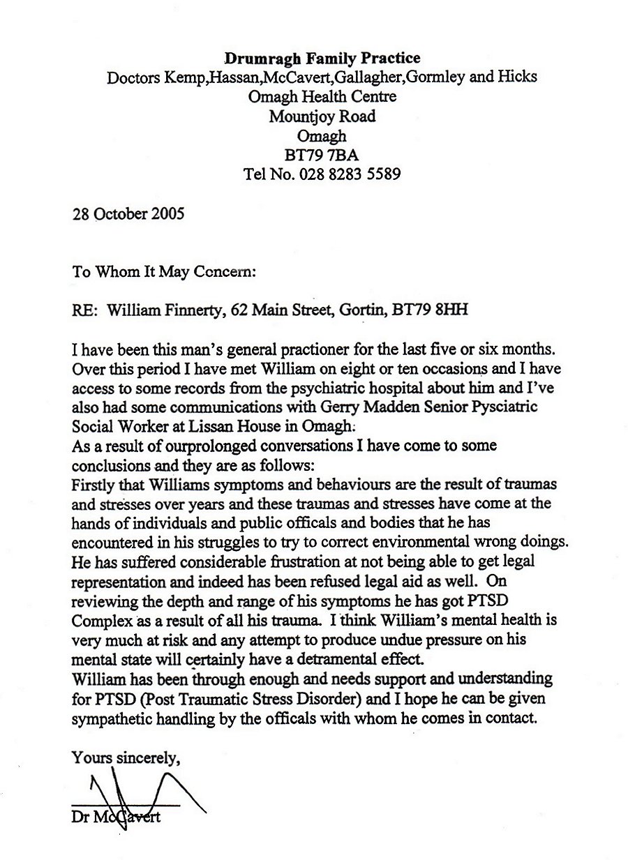 requesting an update for Dr McCavert's "To Whom It May Concern" letter