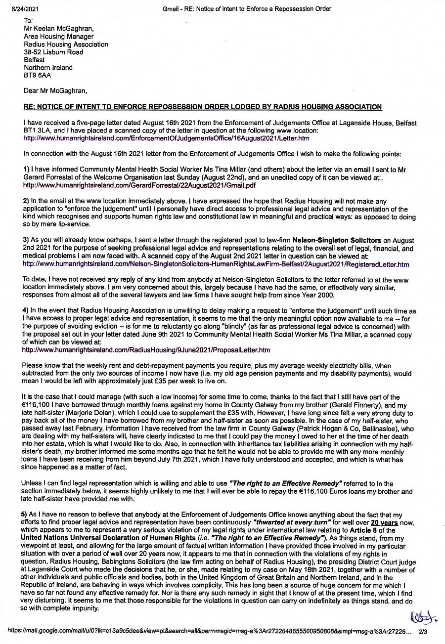 REGISTERED LETTER DATED AUGUST 24TH 2021 TO