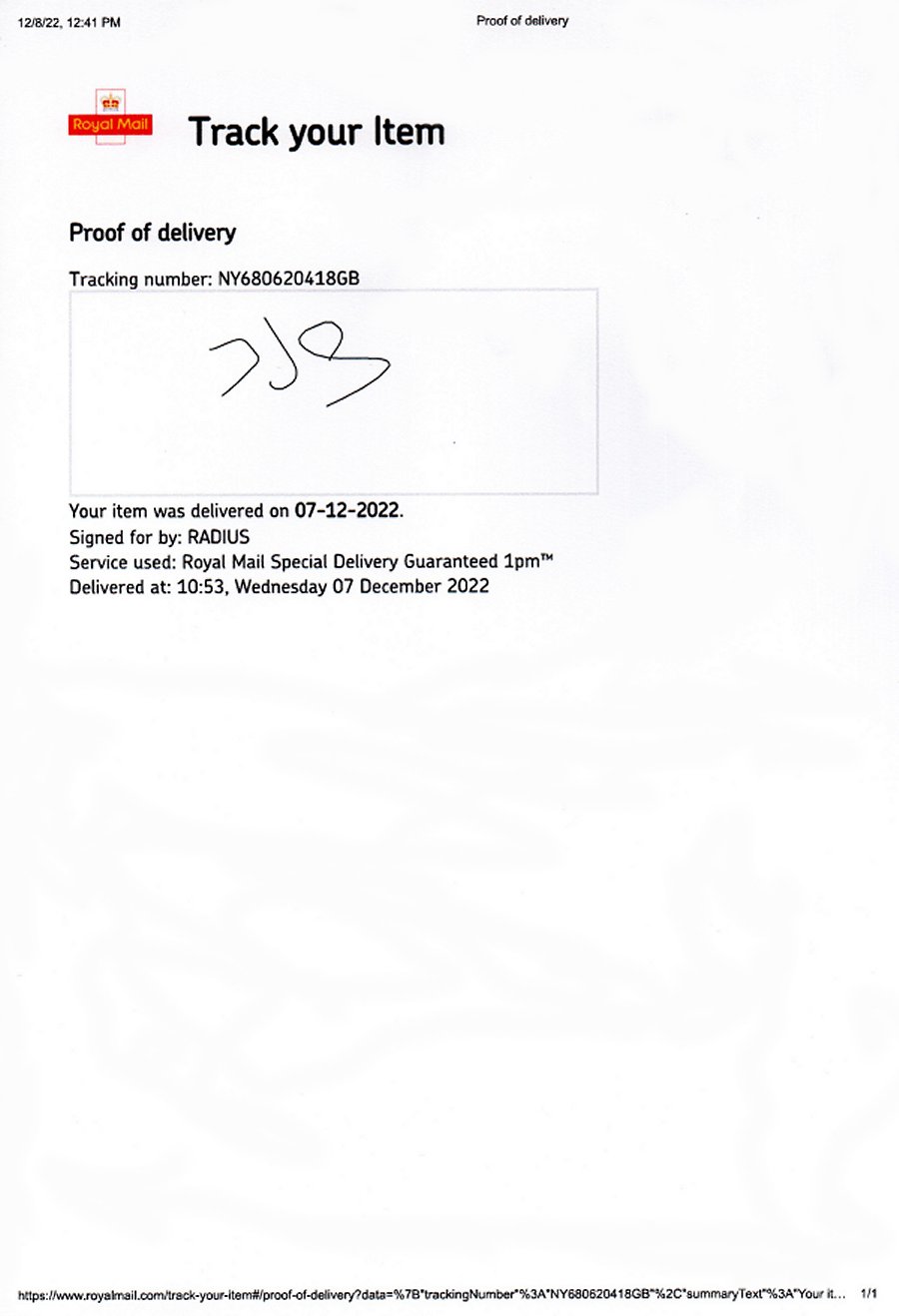 LETTER TO APPEALS SERVICE DATED AUGUST 26TH 2022: