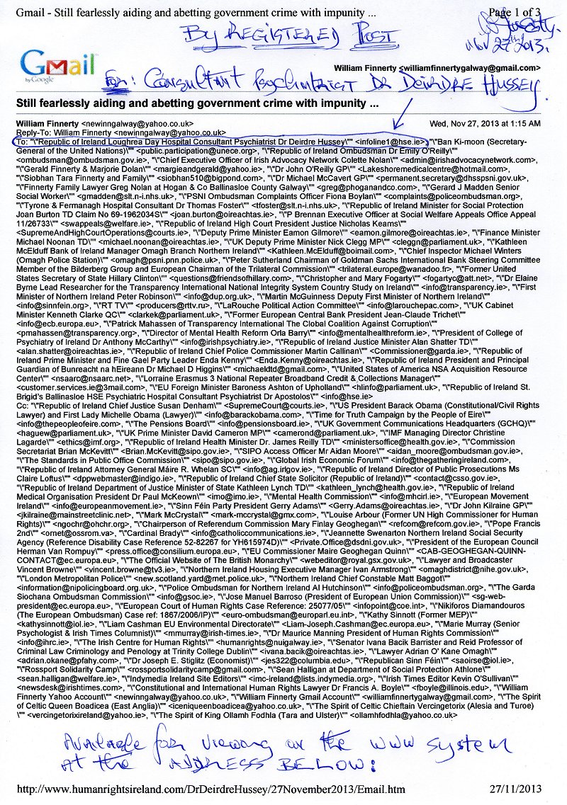 A full copy of the original Yahoo E-mail below -- with "live links" -- can be viewed at the following www location: http://www.humanrightsireland.com/DrDeirdreHussey/27November2013/Email.htm