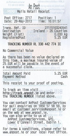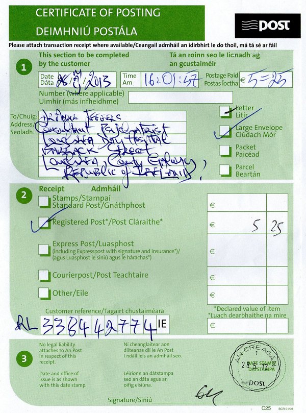 Set of Three Registered Letters sent to Three Senior Republic of Ireland Medical Doctors on May 28th 2013 |