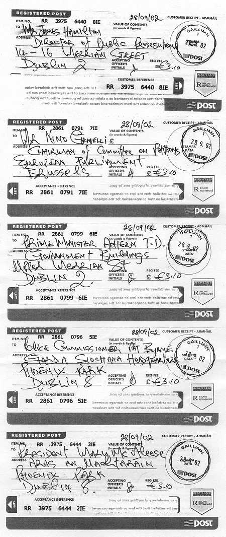 pages), copies of my letter dated July 27th 2000 to Minister Martin